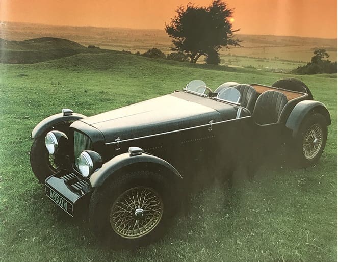 1930s style kits were popular and easy to design and build and I discovered that it was possible to purchase Morgan fiberglass wings and radiator surround from certain genuine Morgan dealers, so I purchased a set and then made what was basically a wooden box to fit the wings to. I did not set out to design a copy of the Morgan, as some people have suggested, even though it would have been easy to do so. I simply designed a wooden box that Morgan parts could fit onto. Once I’d decided that the car looked OK and had worked out that it was worth having a go at making it a commercial possibility I needed a name for the company.