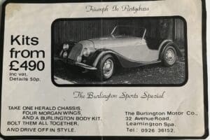 About this time I also sold off the Burlington SS project to a new company called “Burlington Motor Spares Ltd”. This was wholly owned by other people, my only connection was that I received a royalty on each kit sold for the use of the name “Burlington SS”.
