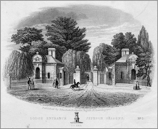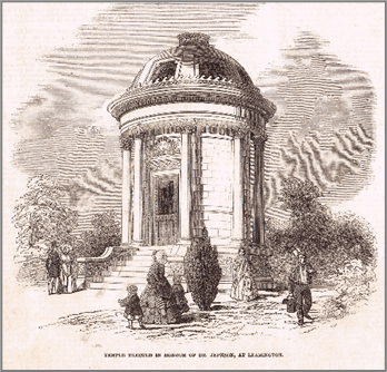 J G Jackson lived in Strawberry Cottage to the north of the Parade entrance; this cottage was demolished in 1867. The site was then taken into Jephson Gardens and used for the construction of the Hitchman Memorial Fountain which was unveiled in 1869.