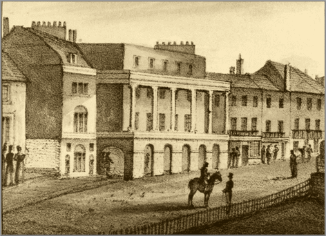 As the town became a fashionable spa, people needed entertainment when not taking the waters. Bath Street was close to several baths in the town and in 1814 John Sims opened a theatre there, opposite Abbotts’ Baths. Two years later Robert William Elliston (1774-1828), an actor-manager from the Theatre Royal in Drury Lane, London took it over. He then built the new building which was to become The Parthenon in 1821. These Lower Assembly Rooms, designed by Samuel Beasley, cost Elliston over £25,000, (or £1.5 million in 2017).