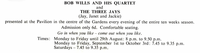 Another of Frank’s memories concerns “The Three Js”, Jay, Janet and Jackie, – three young variety artistes set to perform at the Pavilion one evening. They turned up at performers’ entrance, the gate on Newbold Terrace, only to find it locked. Gentleman Frank helped them over the railings so that they could complete their engagement ……….. and has never forgotten the experience! As the numbers of visitors rose year on year, so did all the attendant costs: installation, maintenance, policing and the inevitable toll on the Gardens themselves. There were also increasing problems with parking and late night rowdiness, so on Sunday 8th October 1961, the illuminations closed for the last time. Frank Cridlan, then owner of the Regent Hotel, tried to revive the Lights in 1988. Although the plan had a great deal of support locally, costs proved prohibitive, – but people like Frank still have wonderful stories to tell.