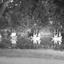 The electrical crew were provided with a punt, so that after the Saturday firework display, they could cruise the river to retrieve the rocket sticks, which had all been carefully targeted at the river, – to hand them over to the gardeners at the glasshouses for use as pea sticks. Recycling is certainly not new.